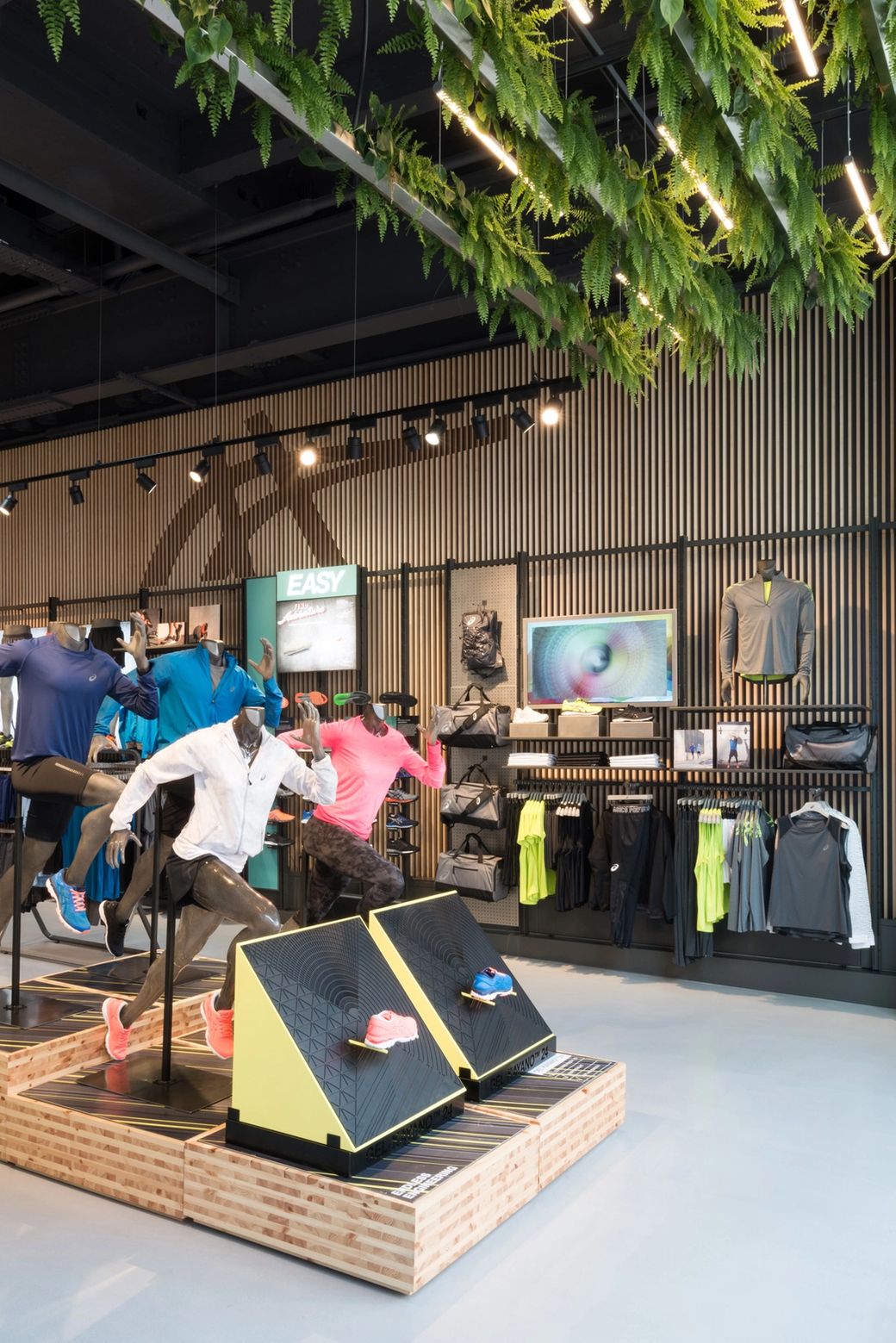 ASICS is an acronym of the latin phrase ‘Anima sana in corpore sano’, meaning ‘a sound mind in a sound body’. Our concept reflects the harmony of this philosophy through a store environment that balances the highly technical aspects of the brand (the body) with natural, warm finishes, features and materials (the mind).