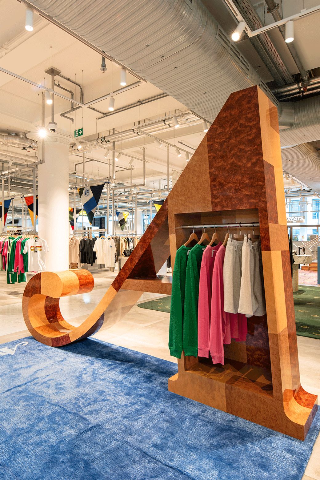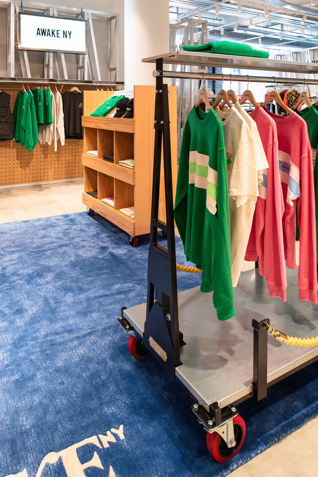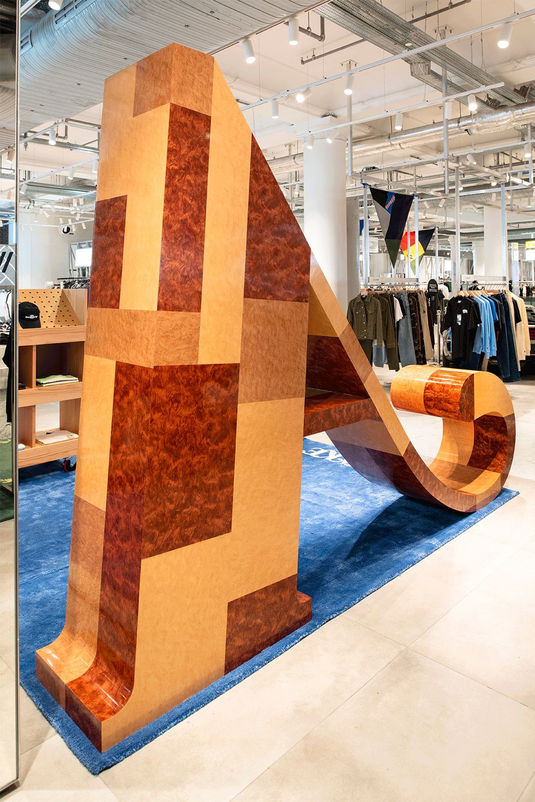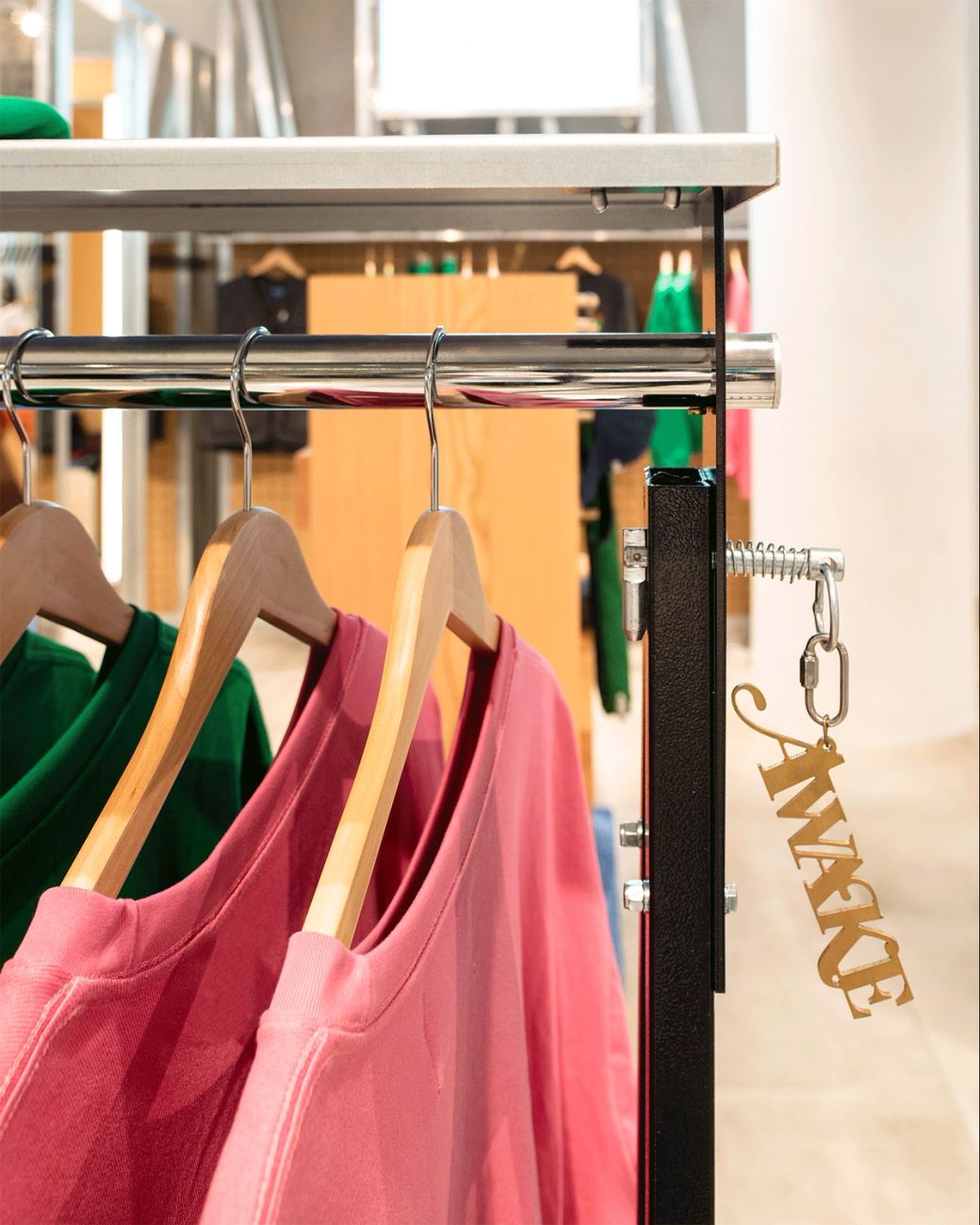 We based the design on our core concept of 'scratch', embodying humble, simple craft. A large DIY-style, sculptural 'A' serves as the pop-up centrepiece. We’ve adapted industrial furniture with intricate details like Awake NY keychains and braided ropes.