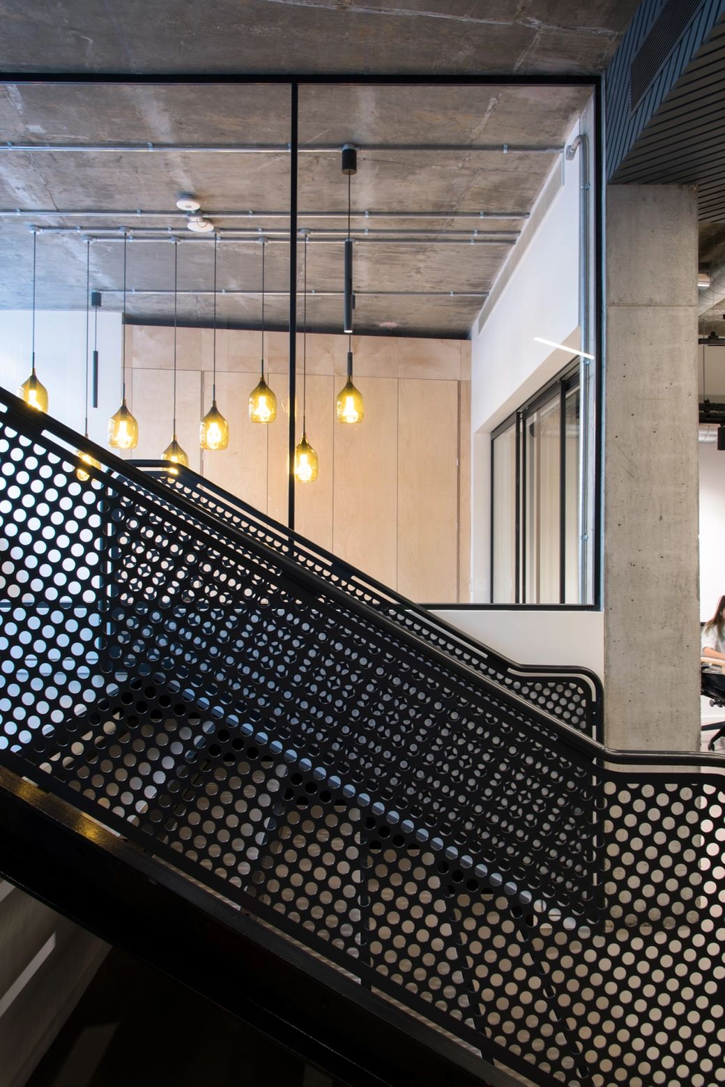 Starting with the empty concrete shell of a restored Victorian building in East London, we introduced bold interventions across two floors to combine the functionality of the office and upstairs reception with the events space below. We kept to a utilitarian palette of cork, plywood, steel and pegboard, using the brand’s signature bright yellow to make the environment instantly recognisable as D&AD. We invited furniture designer Carl Clerkin to develop freestanding elements for the space, adding delightful details and discreet humour.