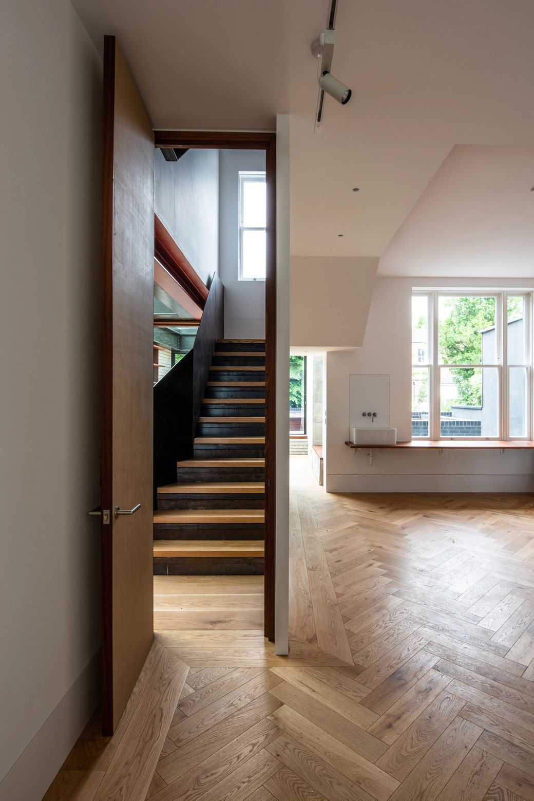 The property is just North of London Fields and is within Hackneys Graham Rd conservation area. The Victorian Villas on this street offer access to their large gardens without passing through the main body of the House, so we could take advantage of the light on all three side of the House.