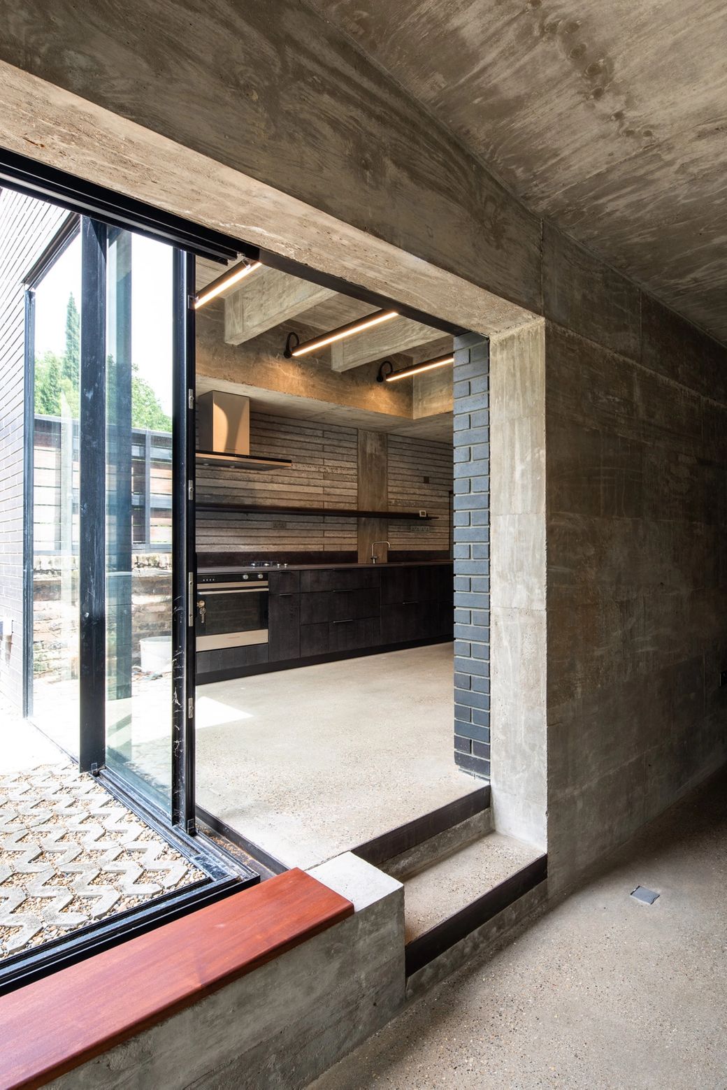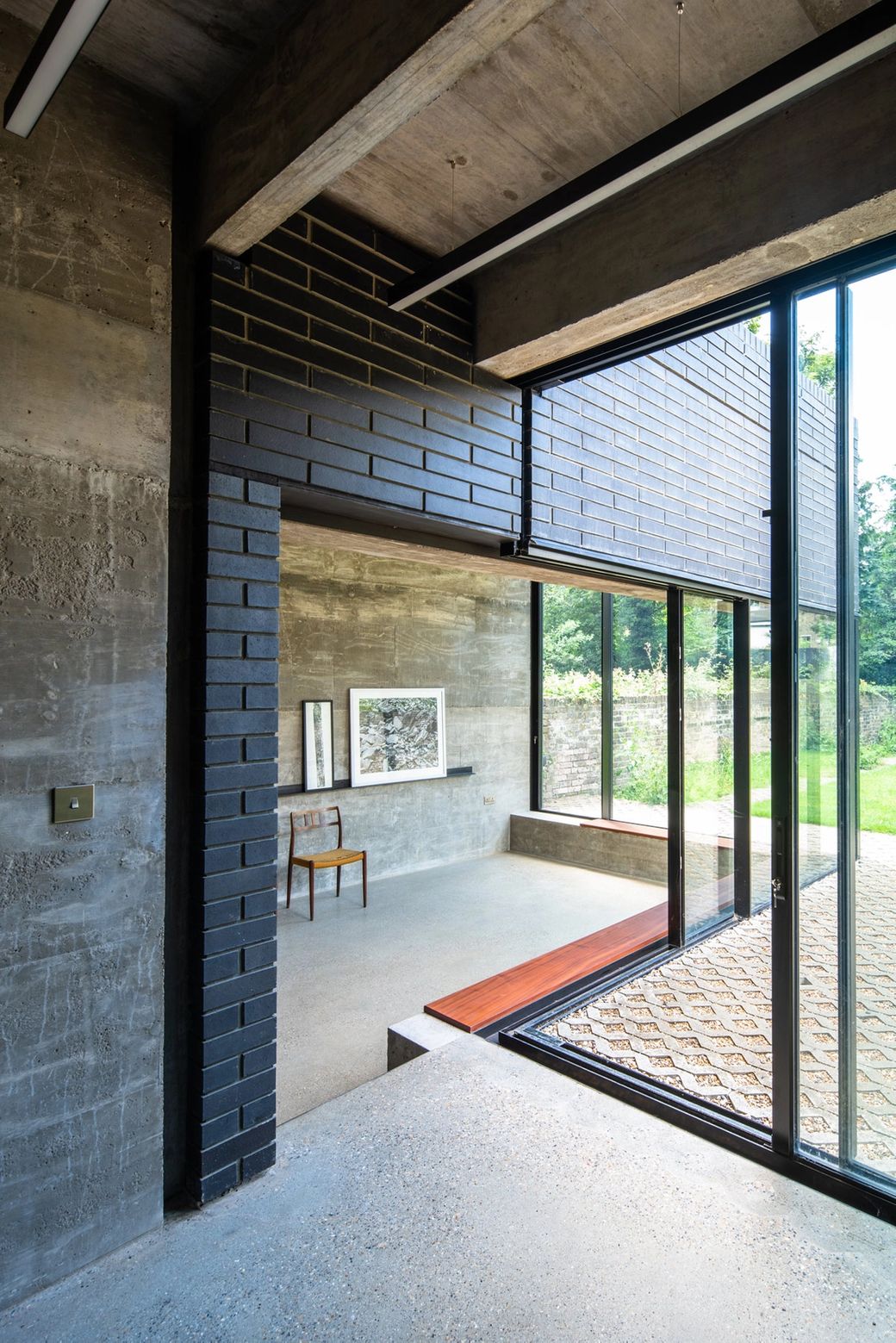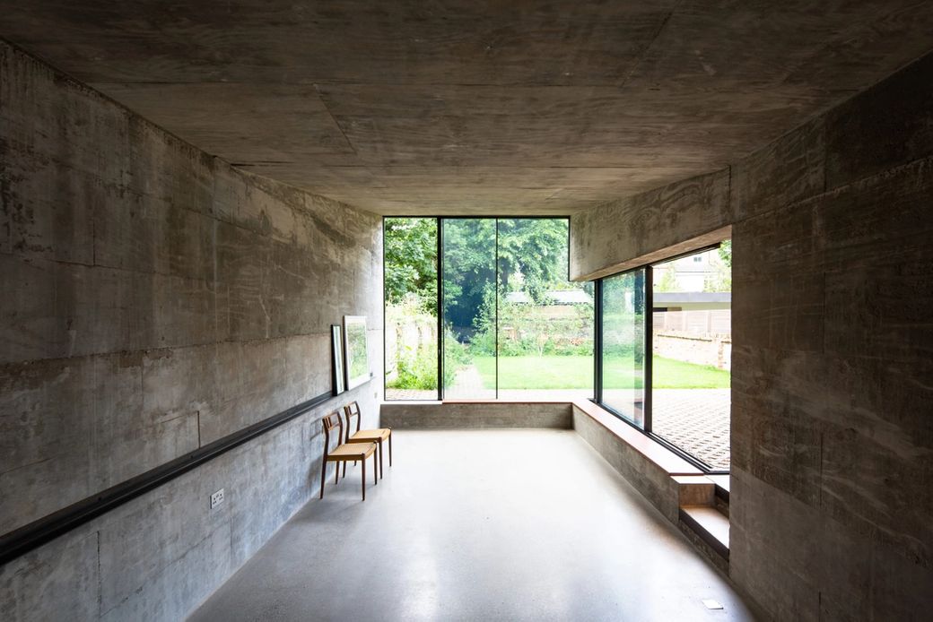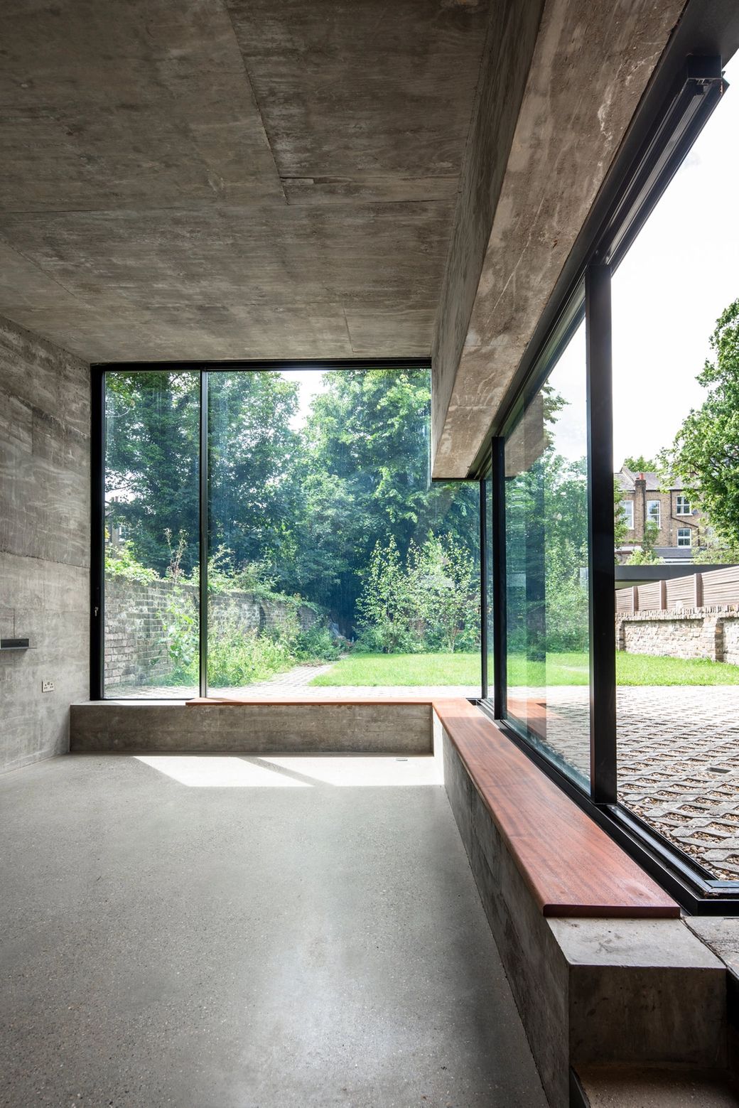 The new extension was formed in concrete as the predominant internal finish for the lower ground floor, living area. Now with direct access to the garden via vast glass sliding doors and a glass roofed studio with terraces for the client off the now free Upper ground floor area ‘Piano Nobile’ which can be enjoyed as one big grand space.