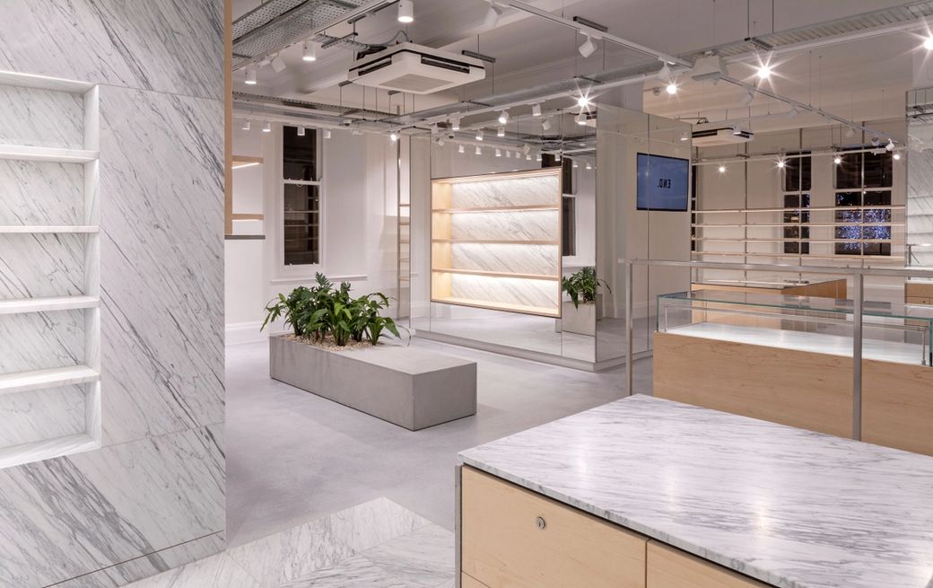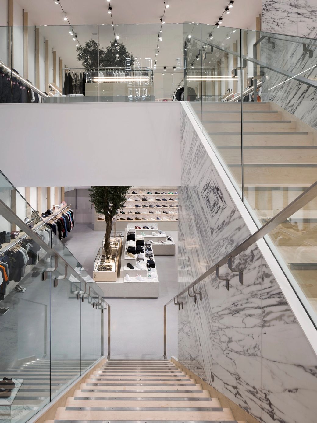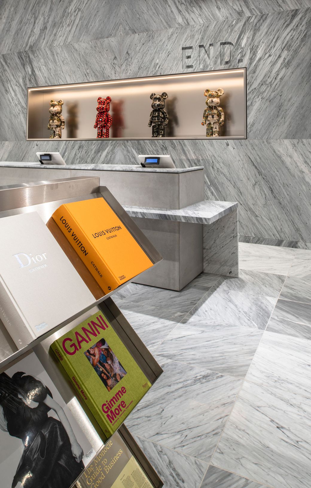 The sheer scale of the sites reinforces their commitment, while the use of marble demonstrates that these are undoubtedly intended to be permanent retail destinations. Yet while the materials are extravagant, they create a muted and calm backdrop that allows the brands hosted by END. to take centre stage.