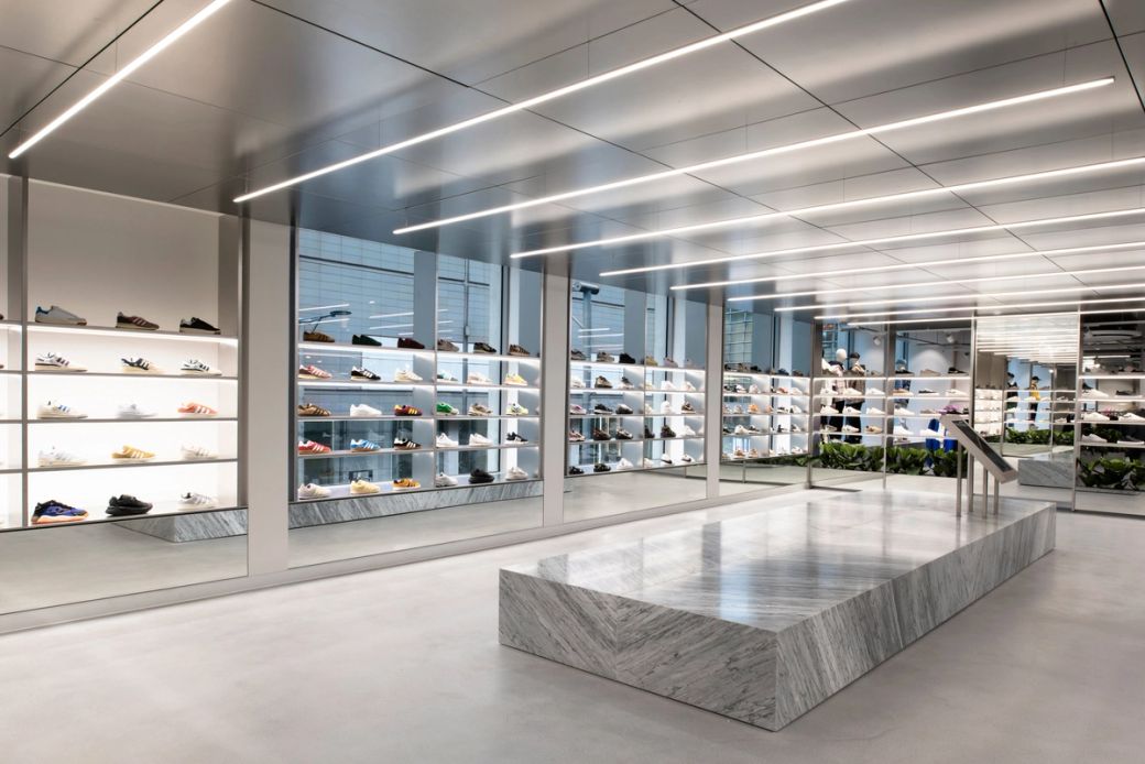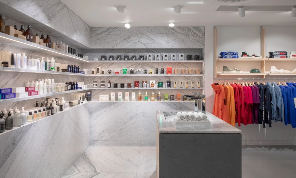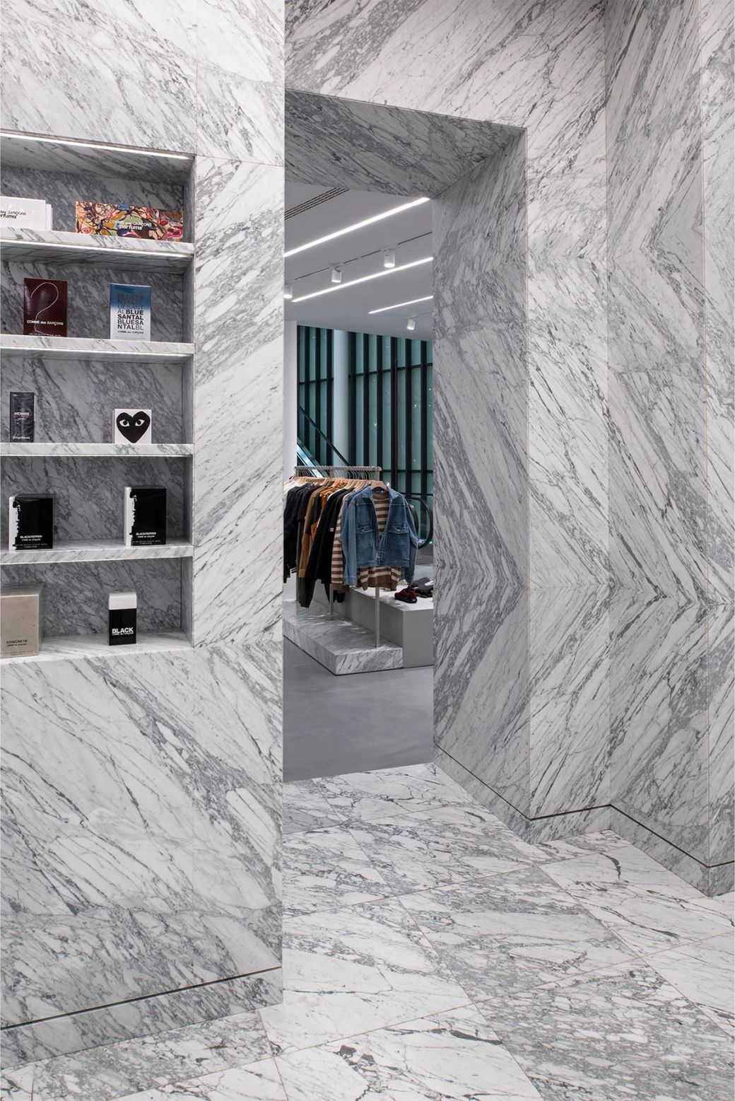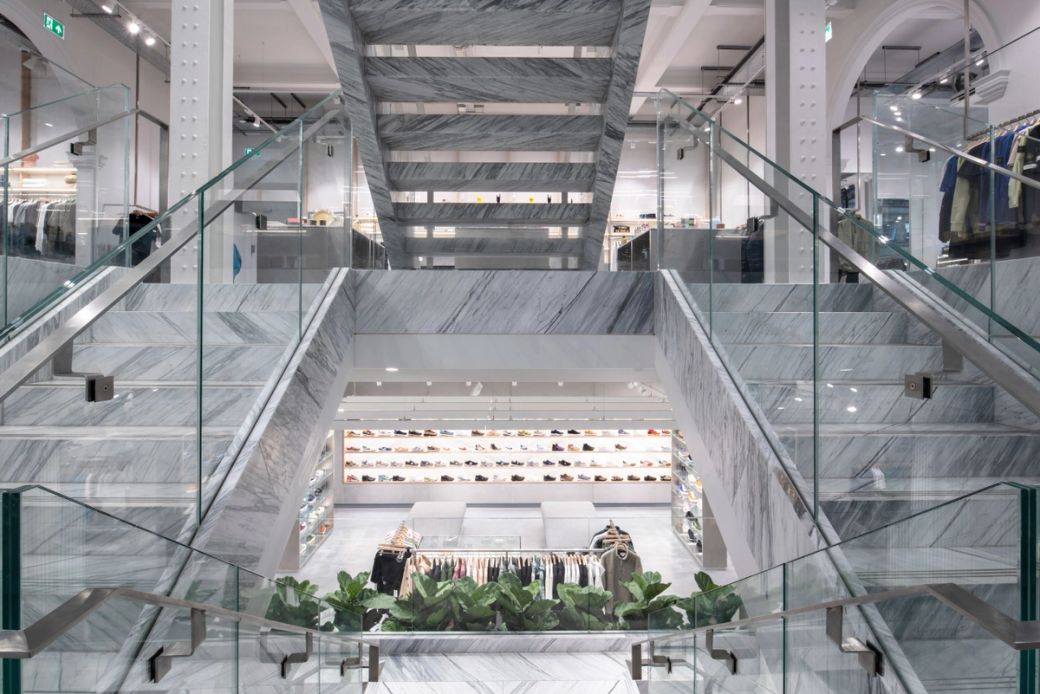 The sheer scale of the sites reinforces their commitment, while the use of marble demonstrates that these are undoubtedly intended to be permanent retail destinations. Yet while the materials are extravagant, they create a muted and calm backdrop that allows the brands hosted by END. to take centre stage.