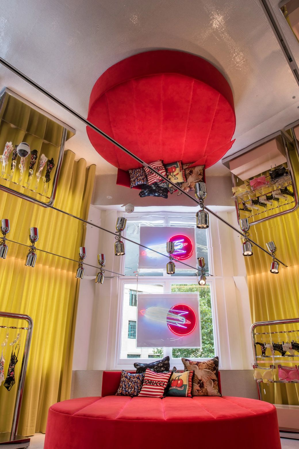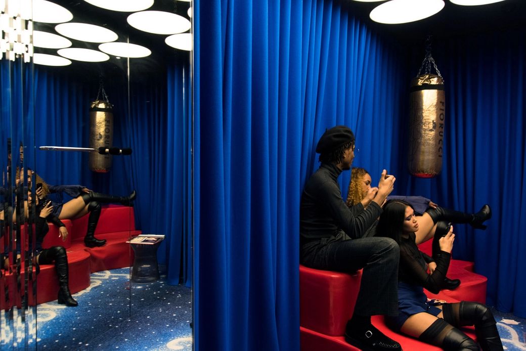 The store acts like a stage set for Fiorucci’s illustrious return – a theatrical environment combining fashion, culture, music and cocktails within a myriad of textures, colour, and reflections. The Fiorucci aesthetic is always evolving, intentionally ‘never finished’, so the space was designed with mobile features for a flexible experience.