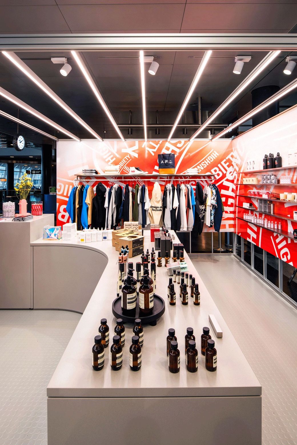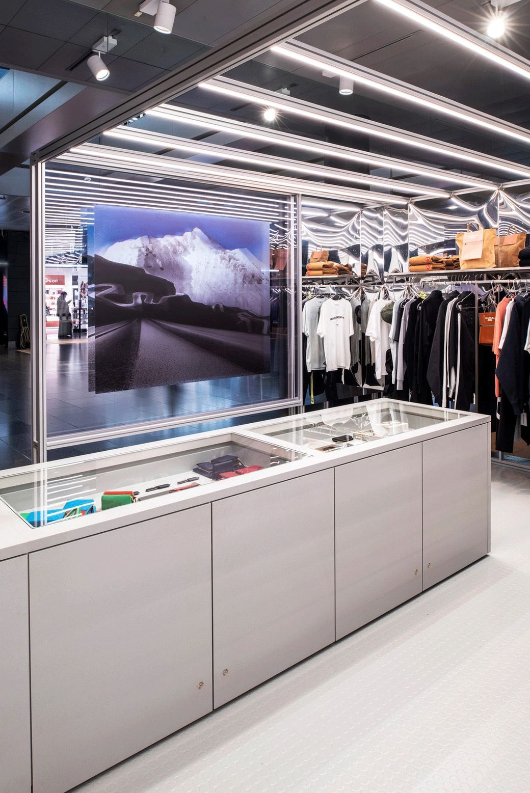 The multi-brand pop-up concept GATEZERO was conceived as an oasis of calm in the bustling Zurich Airport – a clean, restrained backdrop to showcase luxury fashion brands including Acne Studios, Jil Sander and Comme Des Garçon.