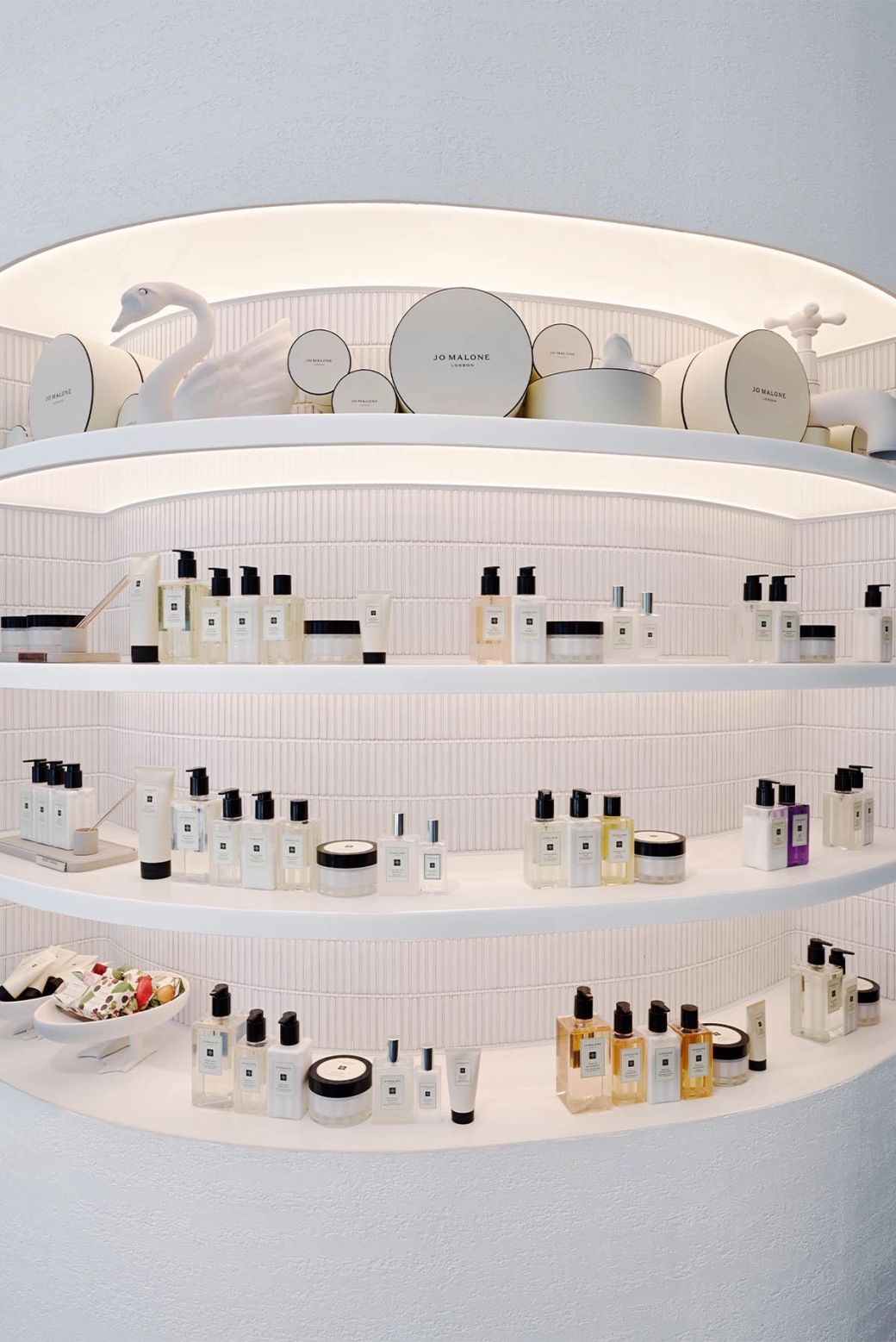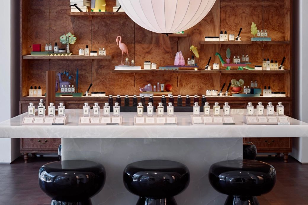 The concept is tactile in its approach, devised to ignite the senses throughout the space, adding new dimensions to the existing Jo Malone design language. The incorporation of textured materials such as terracotta, lime render, oak, and concrete, along with key moments like a bubbling fountain and reclaimed birdbaths for fragrance testing, created a rich sensory experience.