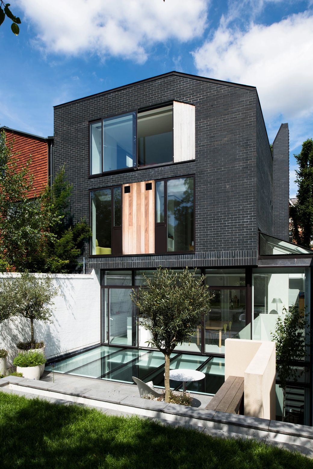 Our first new-build project was commissioned in 2010 for a north London plot within a conservation area. The sensitivity of the site and the local authority’s restrictive attitude ignited an extraordinary confrontation between two very different sensibilities. Careful negotiation ensued and, as a result, a very contemporary building was created, while respecting the local aesthetic.