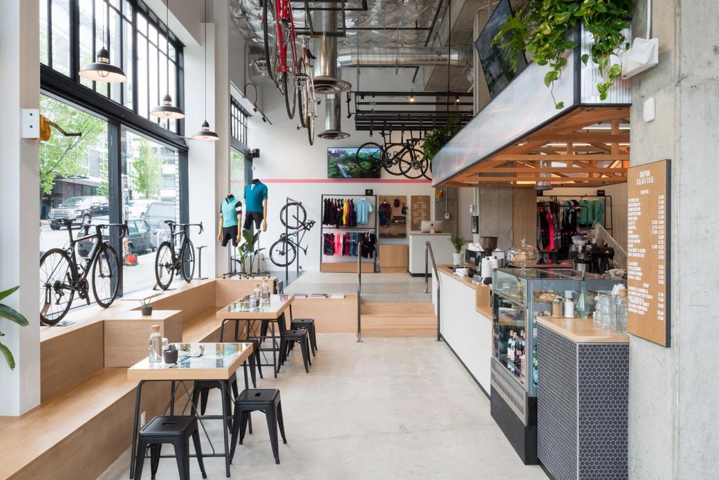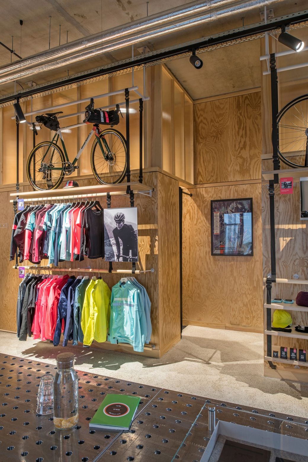 The design had to feel useful, balancing a workshop functionality with retail space, café and social club to epitomise the core cultural values of the brand. Rapha’s dedication to the concept takes the Clubhouse beyond a typical store by giving equal importance to the retail and the social experience. There’s an energetic atmosphere that builds a vibrant sense of community.