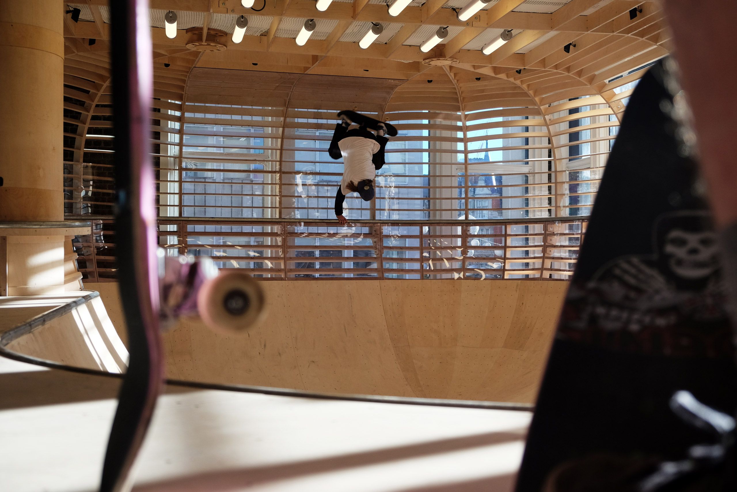 The result is an installation that encourages social engagement, builds community and always feels alive, with regular skateboarding lessons and events curated by the fashion industry’s largest brands and magazines.
